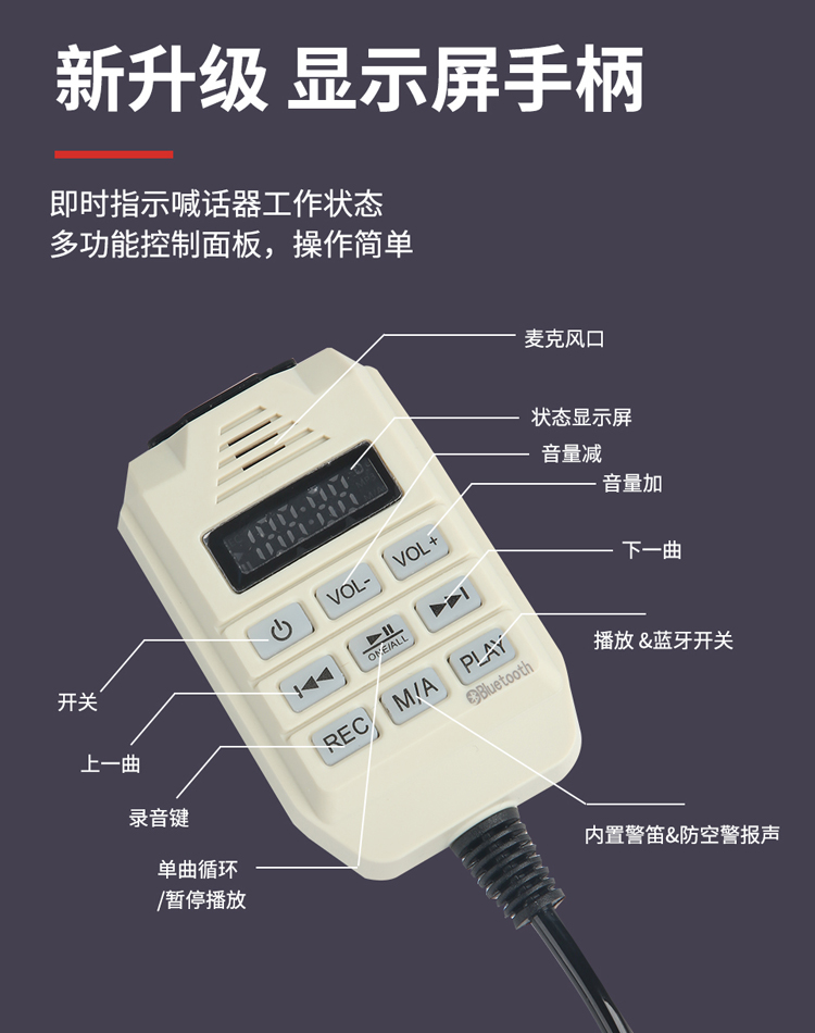 產(chǎn)品名稱:80瓦大功率擴(kuò)音器喇叭帶LED工作狀態(tài)顯示屏支持藍(lán)牙連接帶USB插口